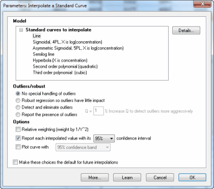 在“标准曲线”列表中选择要插值的“直线”。除非您有很好的配置,否则您可以将该对话框集中的其他选项保留为默认值。