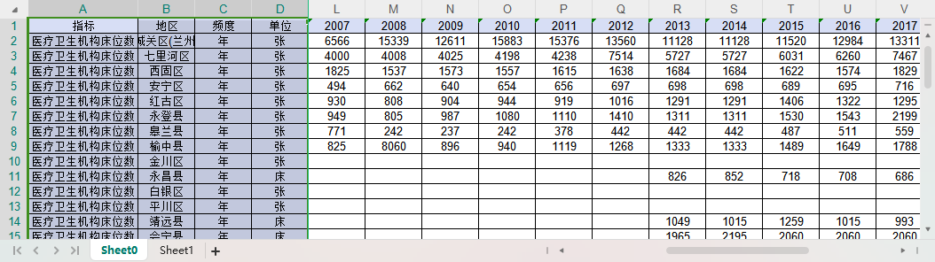 甘肃省各区县医院卫生院医疗卫生机构床位数2000-2022.xls