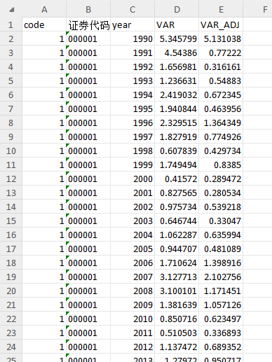 VAR_ADJ是t年公司i的股价回报的方差