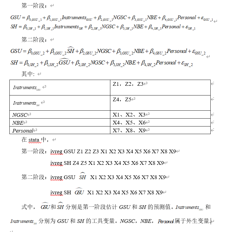 根据构建的模型图和回归模型,在STATA中,如何进行2sls分析呢?图片中的命令好像是错误的?