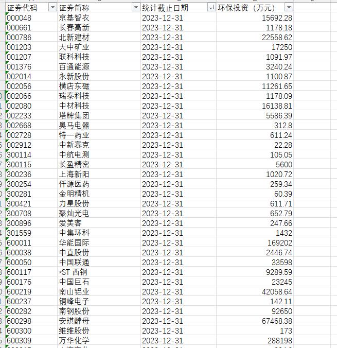 2008-2023年全部A股上市公司环境投资统计表/环保投资指标