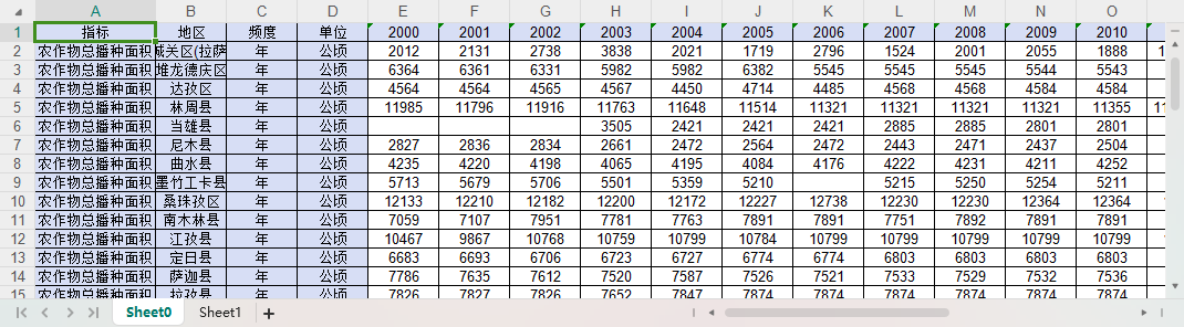 西藏各区县农作物总播种面积2000-2023.xls