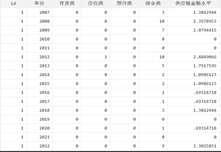 2001-2022上市公司供应链金融水平测算预付类存货类应收类词频总数