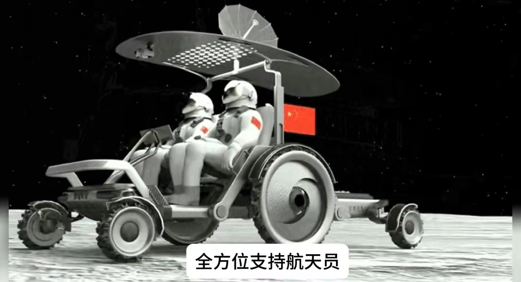 两个航天员乘着月球车哟游览月球
