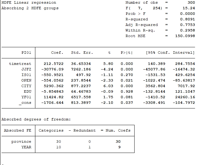 被解释变量是投资额,解释变量是time*treat,控制变量是各种比率,回归系数很大有影响
