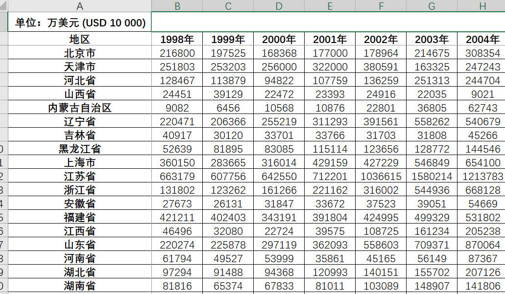 各省1998—2022年实际利用外资直接投资额.xlsx
