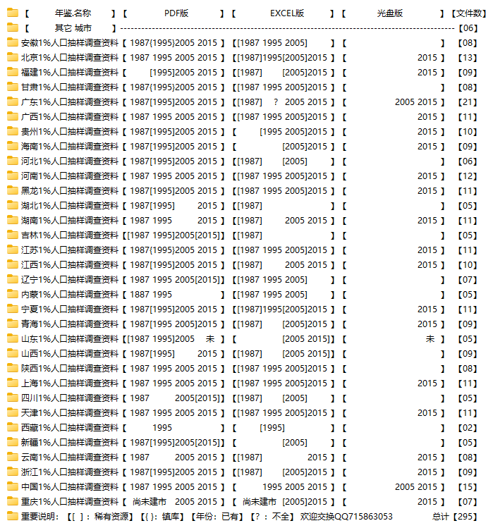 1987年各省1%人口抽样调查资料 PDF 求交换