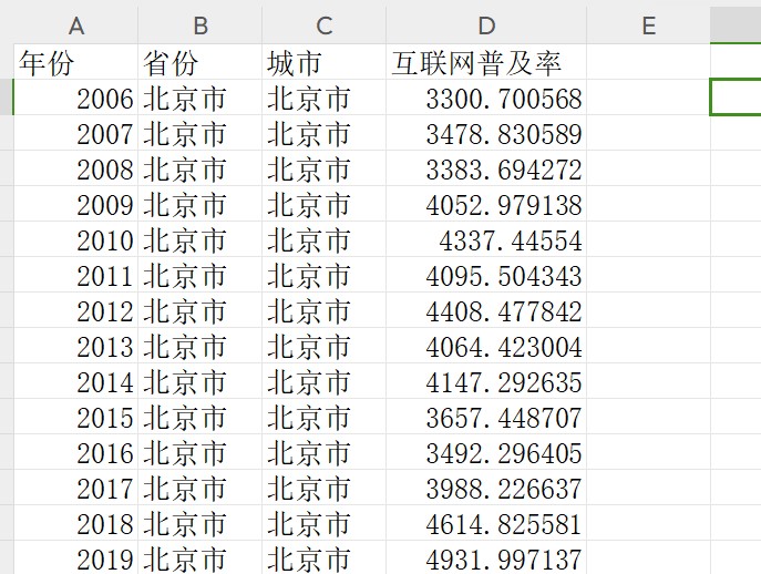 2021-2006地级市互联网普及率数据excel无缺失