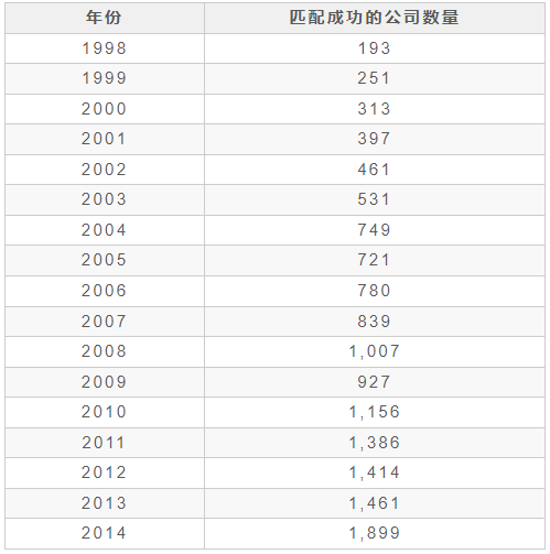 1998-2014 年中国工业企业与上市企业匹配结果(1)