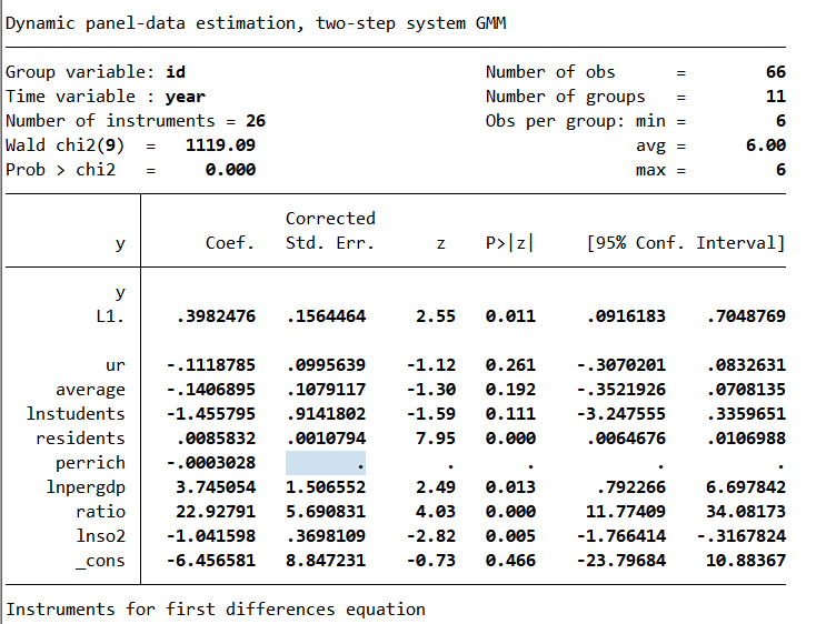 (2)老师有提供一个方法是加if语句,在xtabond2的命令后面加”if id==2“,因为我把样本分成了3个,所以等于的后面就是1.2.3,这样,感觉和分开做没有区别。