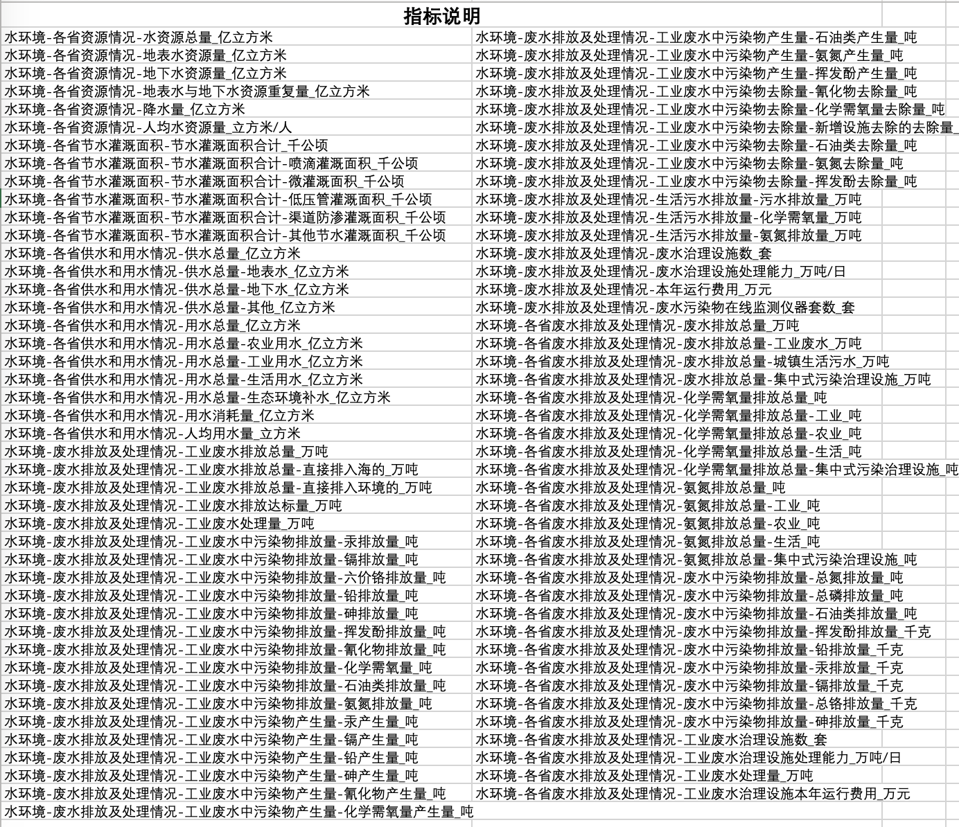 数据名称:全国31省份各省水资源供水用水工业生活废水污染物排放87个指标面板数据(插值填补无缺失版)
