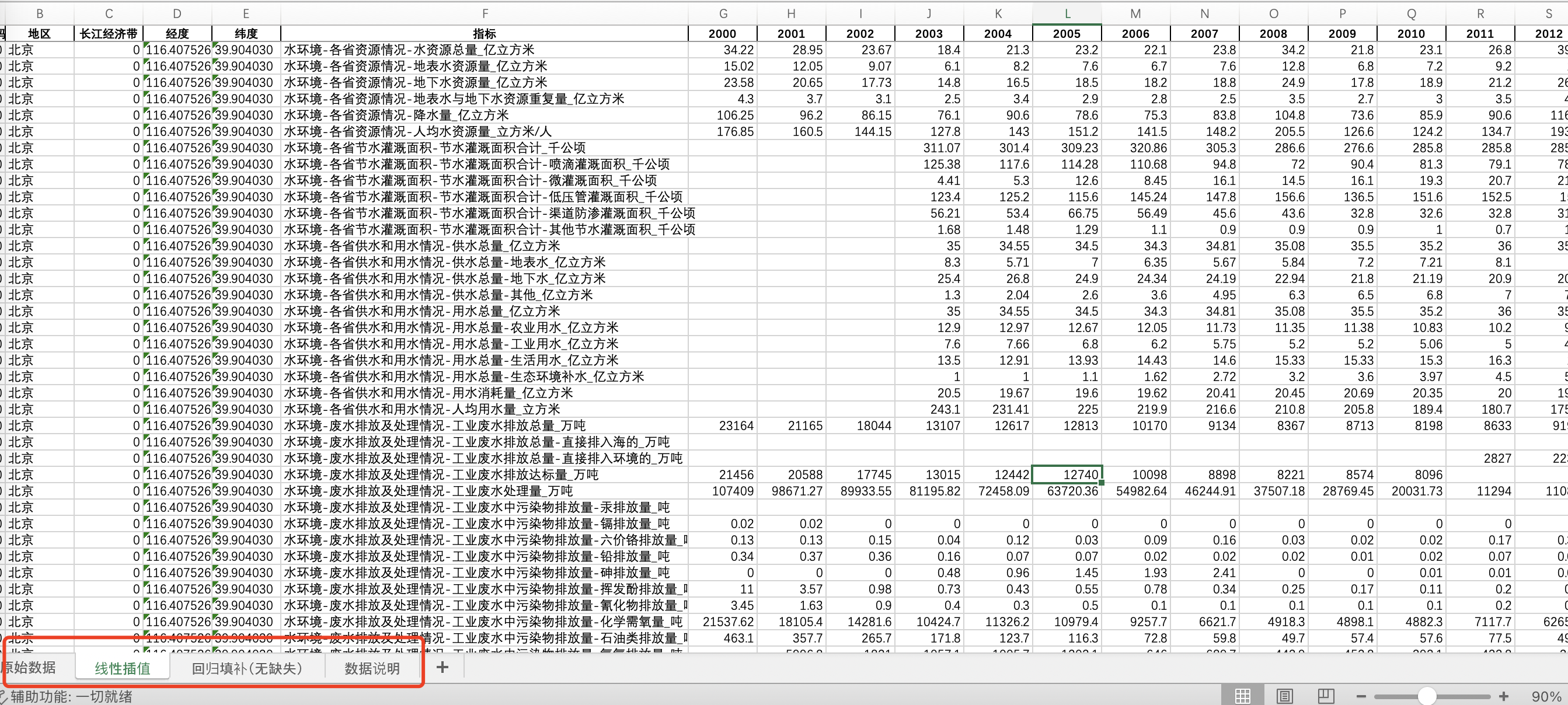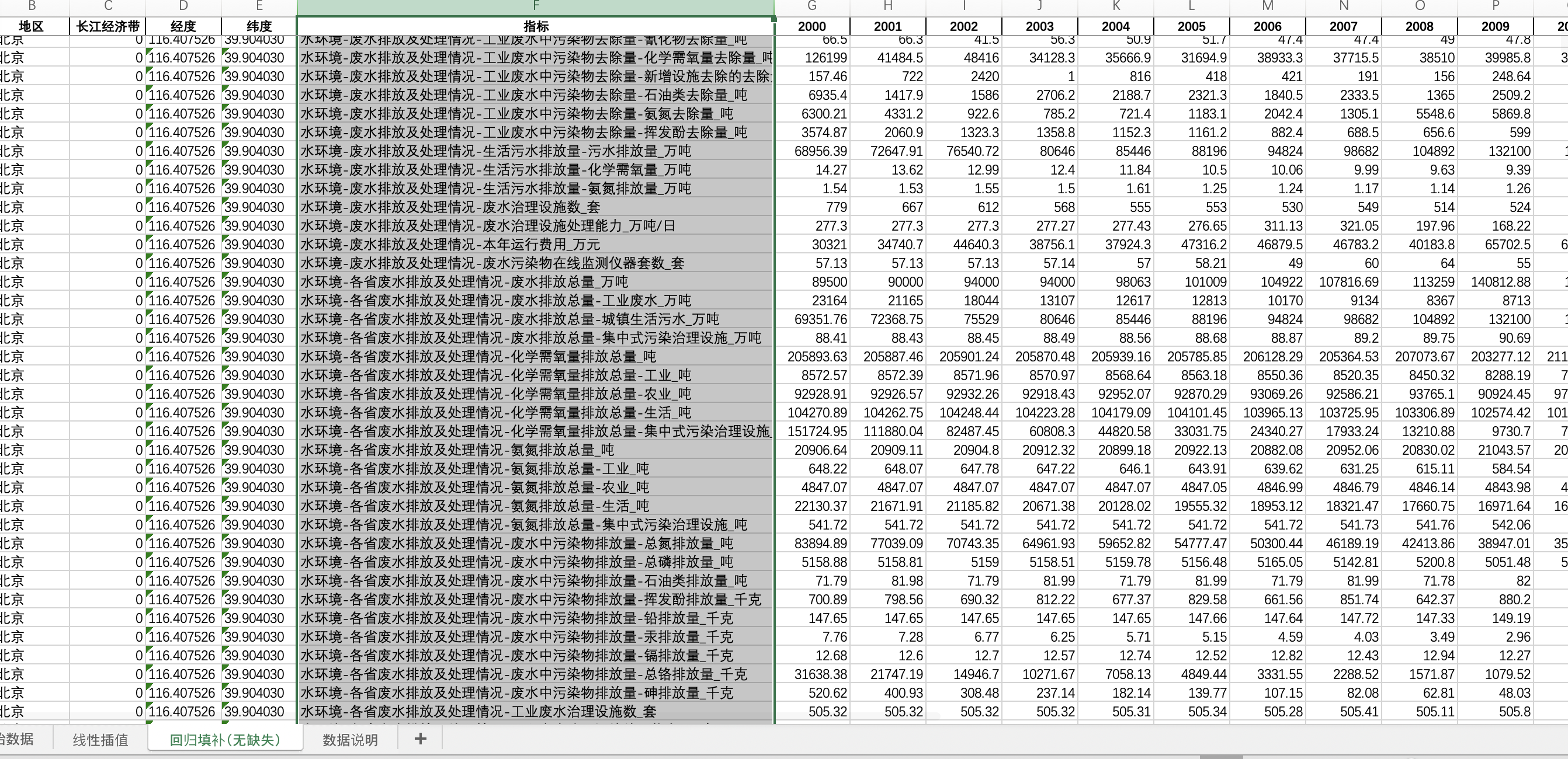 数据格式:Excel面板数据含原始数据(由于多年度指标不同存在缺失值)、线性插值、回归填补(无缺失)三个版本,提供您参考使用。其中,回归填补无缺失值。