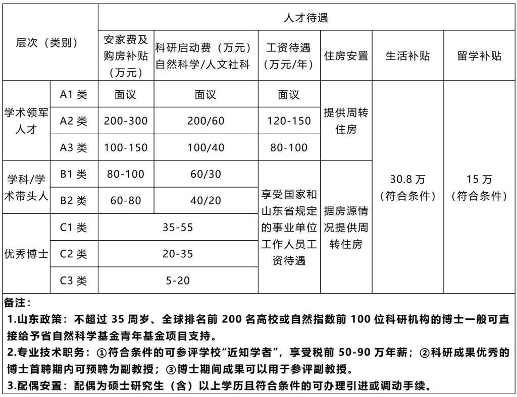 国家自然科学基金委优秀青年科学基金获得者、教育部青年长江学者、中组部青年千人计划、中组部万人计划青年拔尖人才;中国科学院率先行动“百人计划”B类人才(技术英才);“泰山学者”特聘教授(海外特聘专家);其他省份省级人才工程入选者(相当于泰山学者工程);省级有突出贡献的中青年专家;省杰出青年科学基金获得者;国家自然科学基金重点项目主持人/国家社会科学基金重大项目主持人;经同行专家评价和学校人才工作领导小组研究,认定与上述人才层次相当的其他人才等。