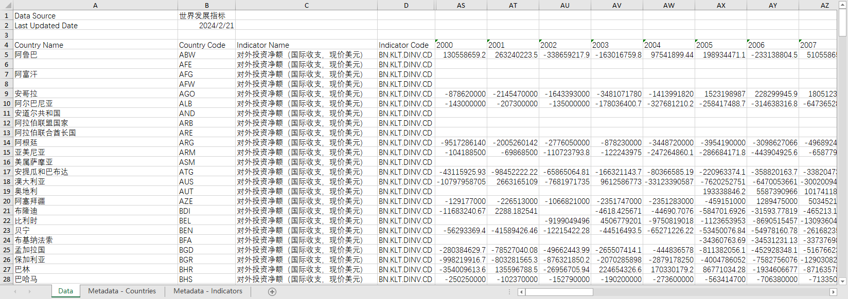 yusb 发表于 2024-4-3 22:01 全球世界各国经济发展数据2000-2022对外投资净额(国际收支,现价美元) 数据来源:WDI世界银行
