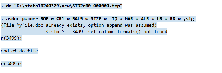 stata使用asdoc命令想输出相关性分析结果,但是出现图示的情况。求助各位高手看看咋回事