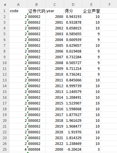 然后,对12个指标采用因子分析方法计算出企业声誉得分。