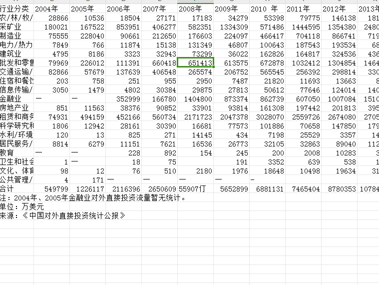 2004-2022年分行业对外直接投资流量OFDI流量、对外直接投资存量、OFDI存量
