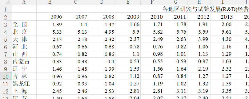 2006-2022各省RD经费投入强度/R&D经费投入强度(科技发展水平/科技创新)数据