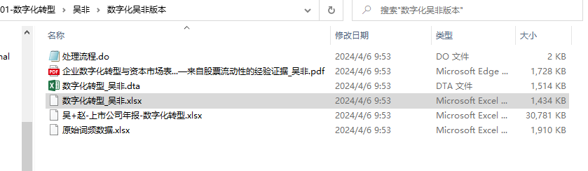 3.张永坤;李小波;邢铭强.企业数字化转型与审计定价[J].审计研究,2021,(03):62-71. 当无形资产明细项包含“软件”“网络”“客户端”“管理系统”“智能平台”等与数字化转型技术相关的关键词以及与此相关的专利时,将该明细项目界定为“数字化技术无形资产”,再对同一公司同年度多项数字化技术无形资产进行加总,计算其占本年度无形资产的比例,即为企业数字化转型程度的代理变量。