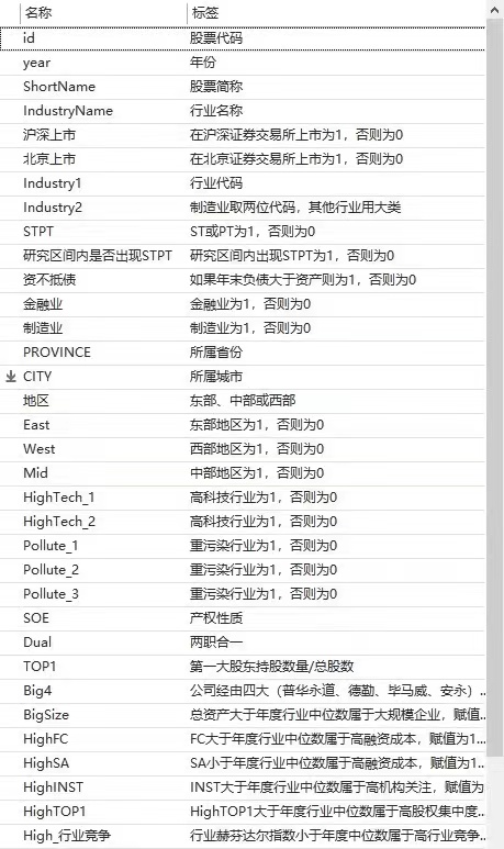是否STPT、研究区间内是否出现STPT、是否沪深上市、是否金融业、是否制造业、是否资不抵债