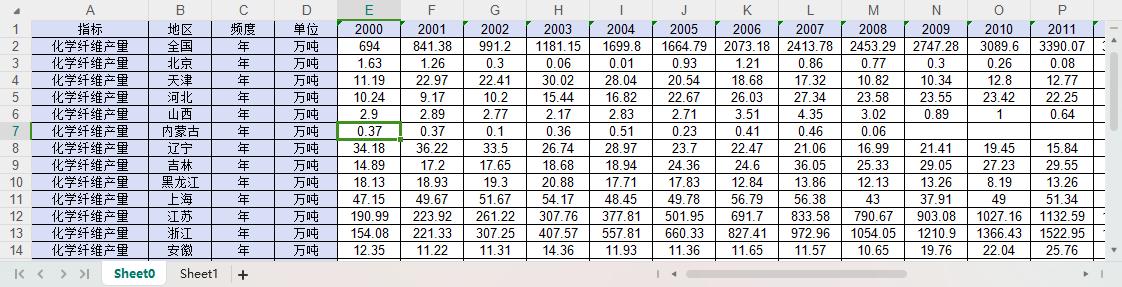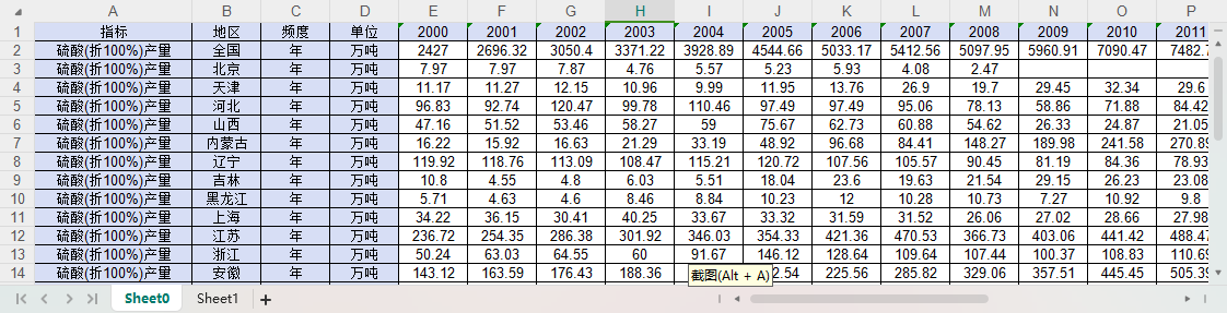 全国31个省份硫酸(折100%)产量2000-2023.xlsx