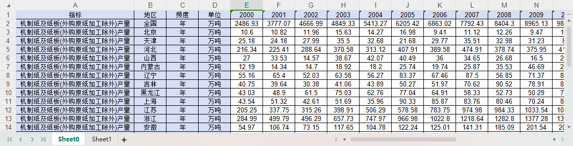 全国31个省份机制纸及纸板(外购原纸加工除外)产量2000-2023.xlsx
