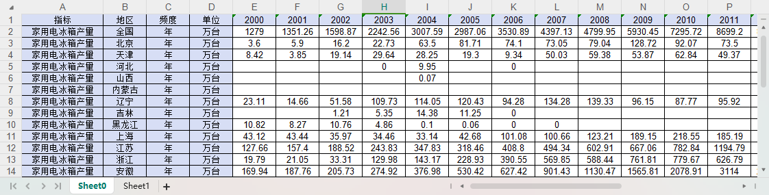全国31个省份家用电冰箱产量2000-2023.xlsx