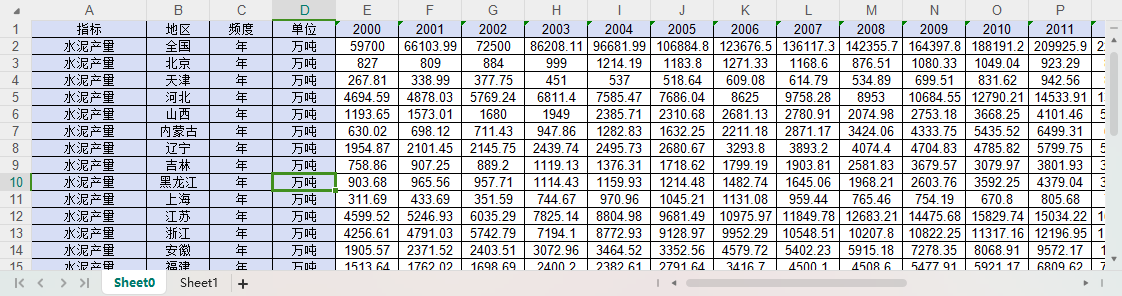 全国31个省份水泥产量2000-2023.xlsx