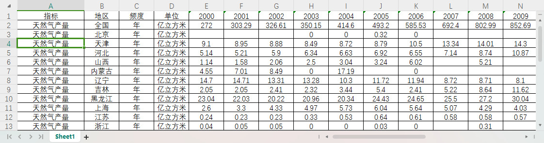全国31个省份天然气产量2000-2023.xlsx