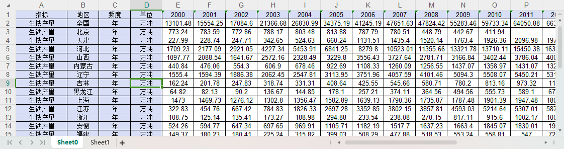 全国31个省份生铁产量2000-2023.xlsx