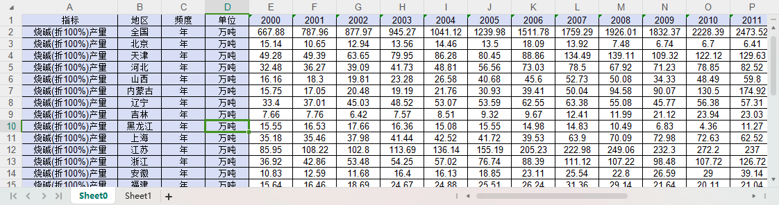 全国31个省份烧碱(折100%)产量2000-2023.xlsx