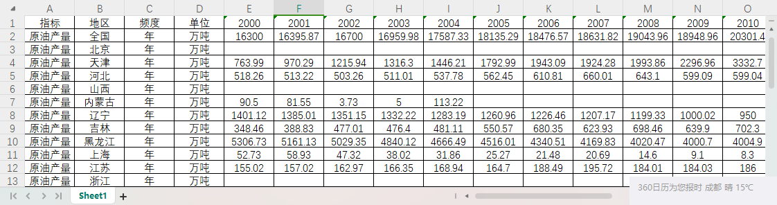 全国31个省份原油产量2000-2023.xlsx