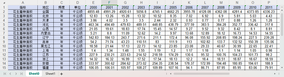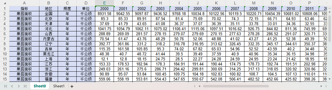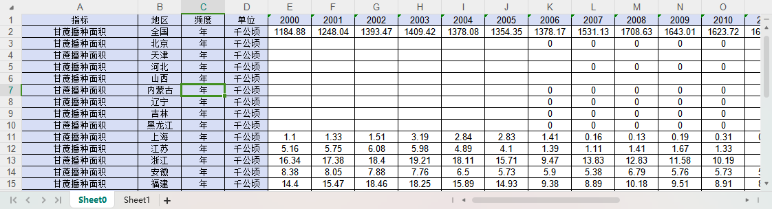 全国31个省份甘蔗播种面积2000-2023.xlsx