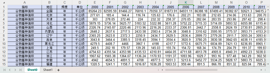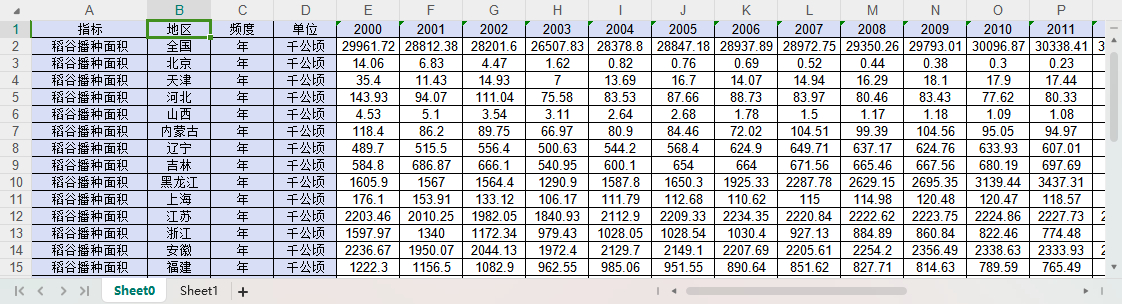 全国31个省份稻谷播种面积2000-2023.xlsx