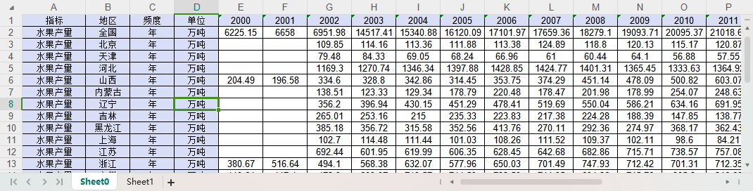 yusb 发表于 2024-4-8 20:22 全国31个省份水果梨苹果葡萄香蕉甜菜薯类产量2000-2023 数据来源:基于中国统计年鉴、各省统计年鉴的数据 ...