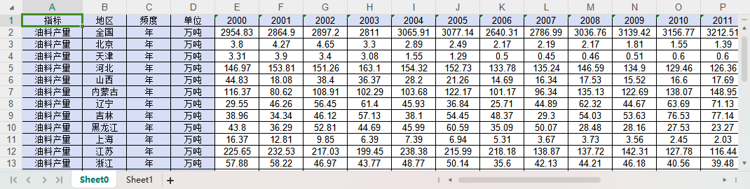 全国31个省份油菜籽产量2000-2023.xlsx