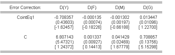 eviews进行evcm的模型建立,选择的lag interval of D为0 1,然后得到的error correction中缺少了滞后项,为什么呢