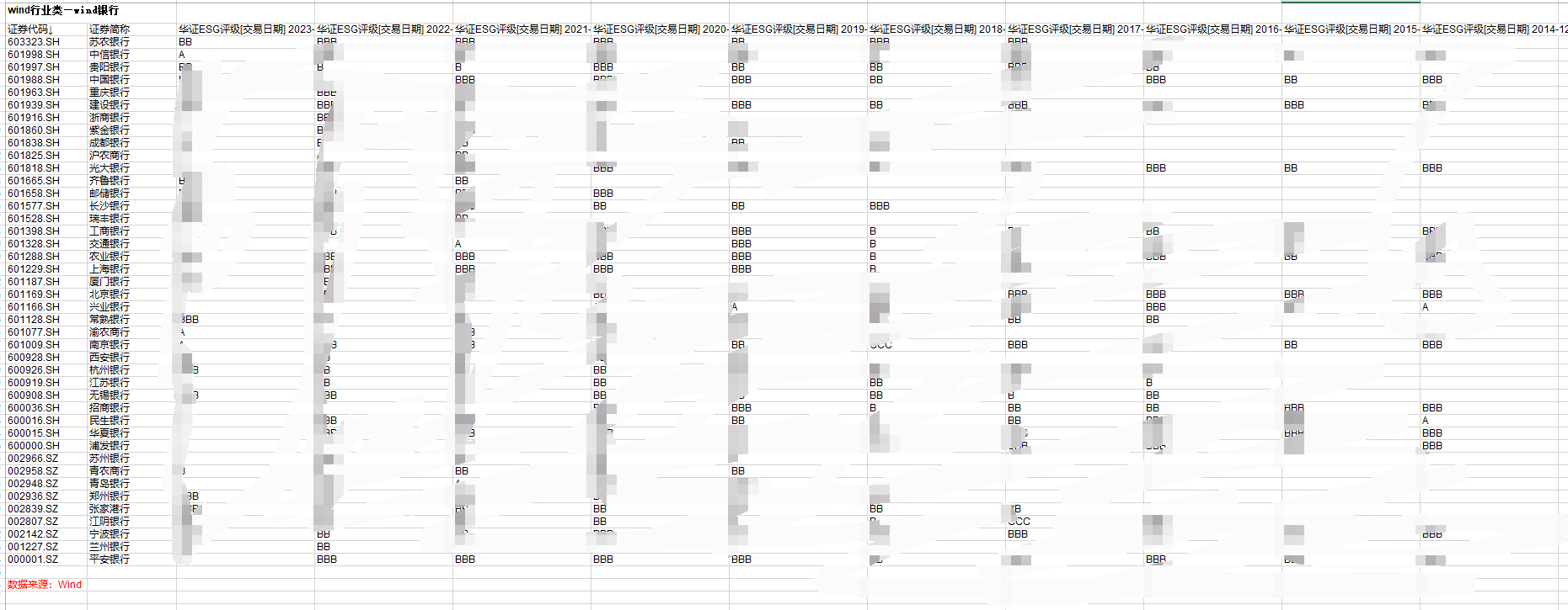 2014-2023年42家上市银行ESG评级数据