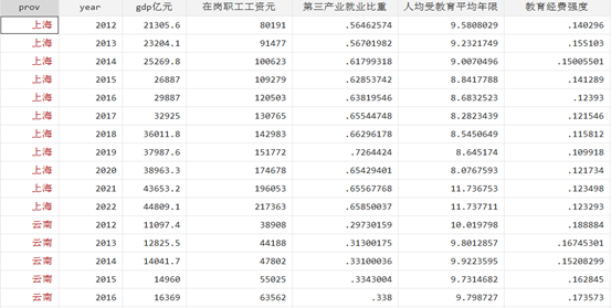在岗职工工资 | 第三产业就业比重 | 人均受教育平均年限 |