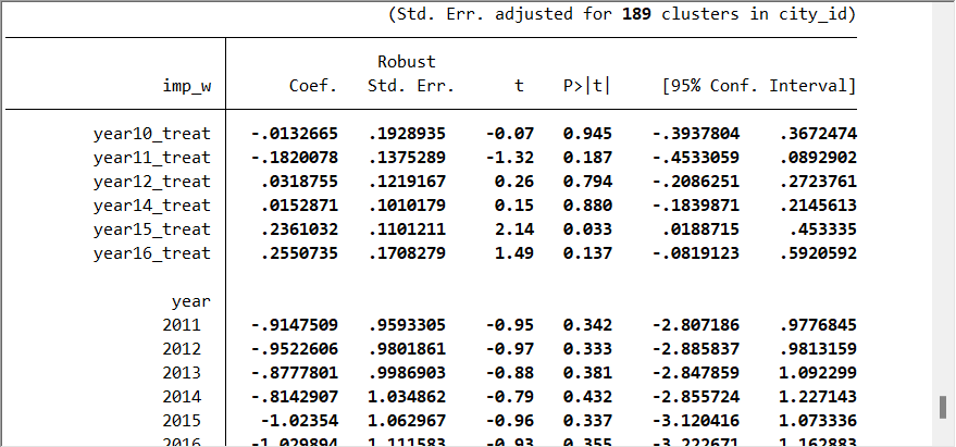 平行趋势检验政策后一起显著,一期不显著,这是合理的吗?要如何解释?具体回归结果如图所示