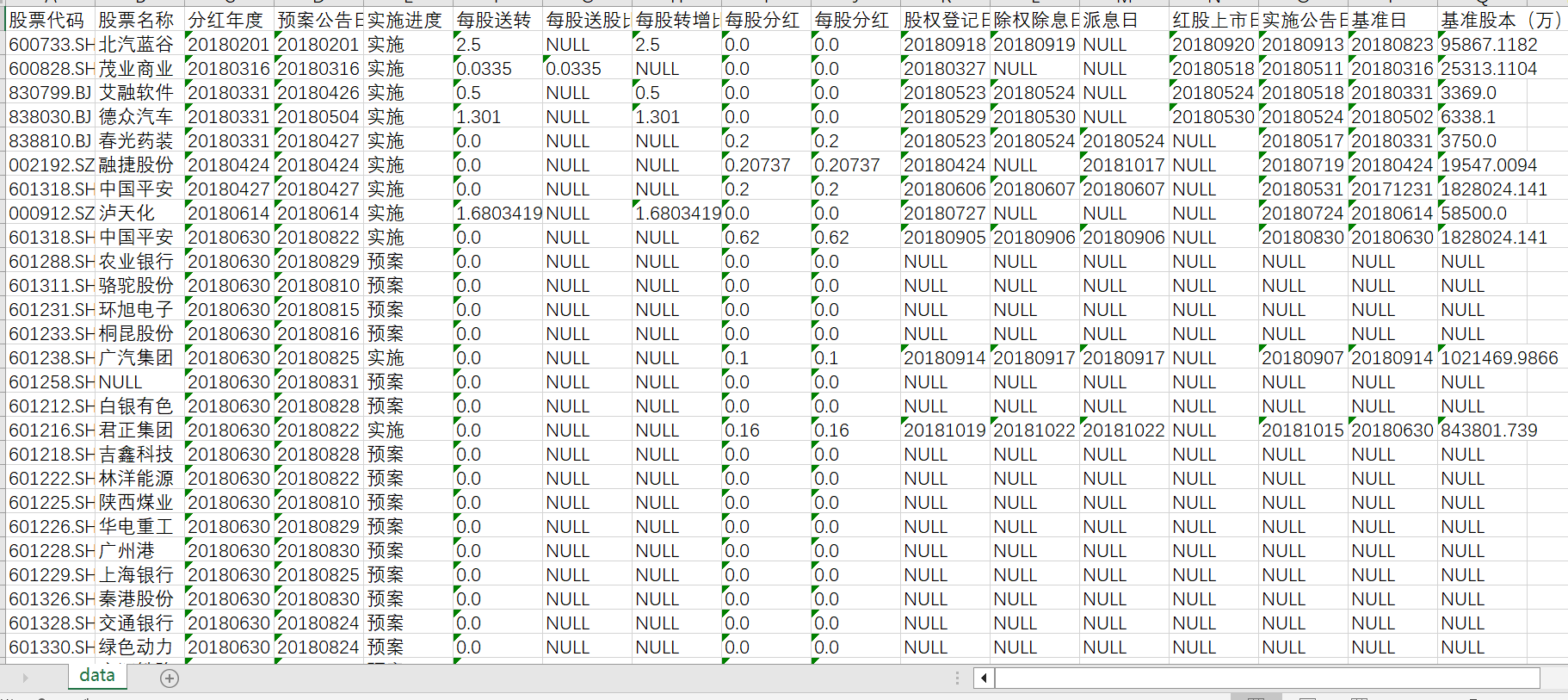 上市公司分红送股数据,包括