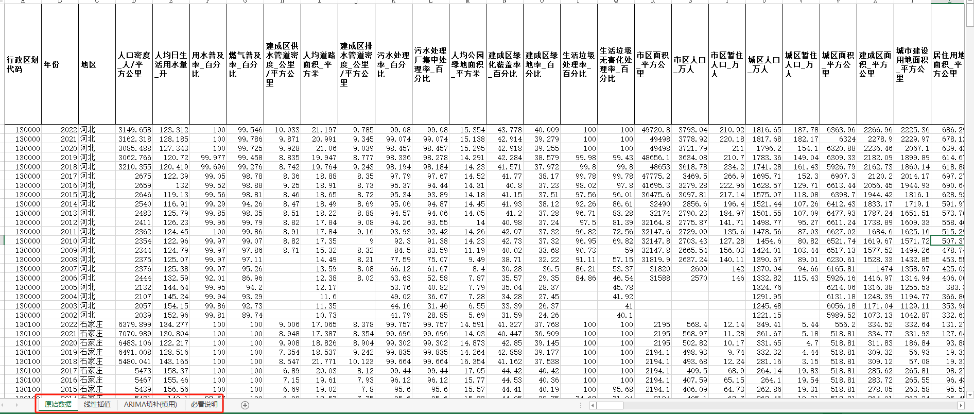 中国城市建设数据库(包含四个页签:原始数据、线性插值、ARIMA填补、有效值统计四个页签)本数据搜集整理了《中国城市统计年鉴》公布的历年数据,数据年度为2002-2022年。