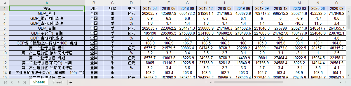中国全国季度数据201803-202312国内生产总值GDP第一二三产业工农业批零房地产等行业增加值