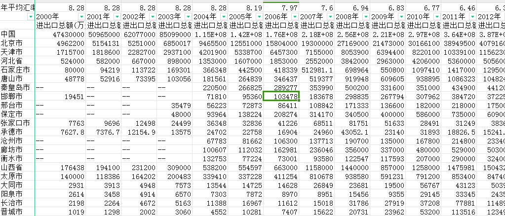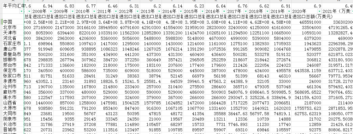 4、来源:城市年鉴、各省年鉴、城市公报、2021年为城市统计年鉴中进口额出口额加总之后换算成万美元,已尽最大可能进行补全,具体缺失情况参看数据预览