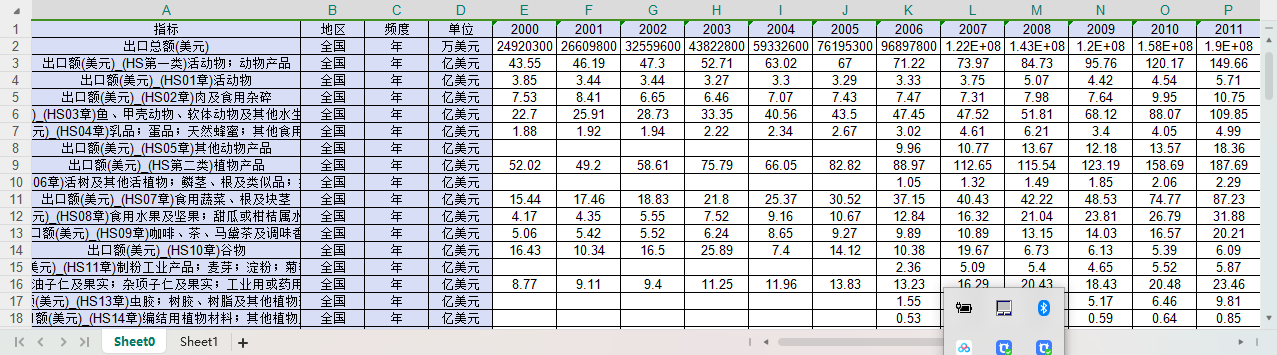 中国全国出口货物金额2000-2023细分HS章节01-99