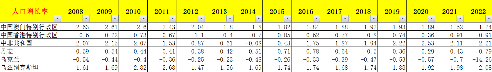 2000-2022年 200多个国家 全球各国 人口增长率.xlsx