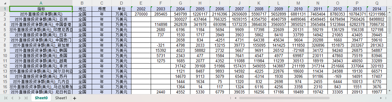 中国全国对外直接投资OFDI细分全球世界各国2002-2023