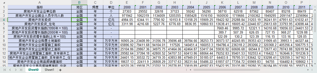 数据范围:中国全国级别的数据(没有分省)