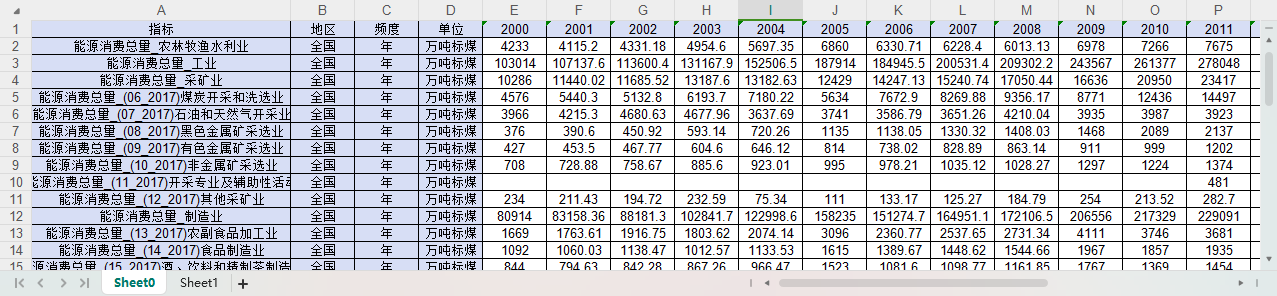 数据范围:中国全国级别的数据(没有分省)