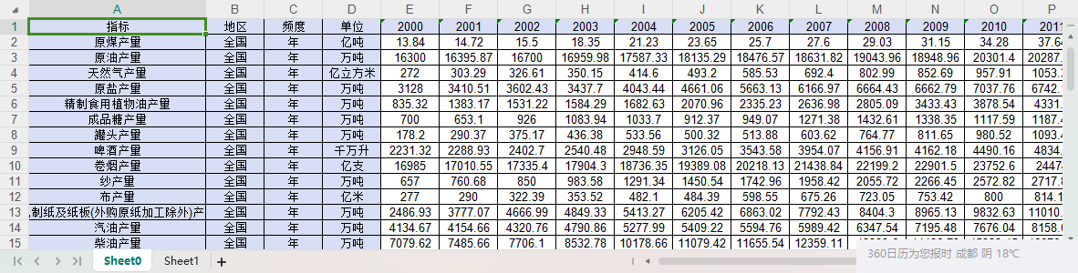 数据范围:中国全国级别的数据(没有分省)